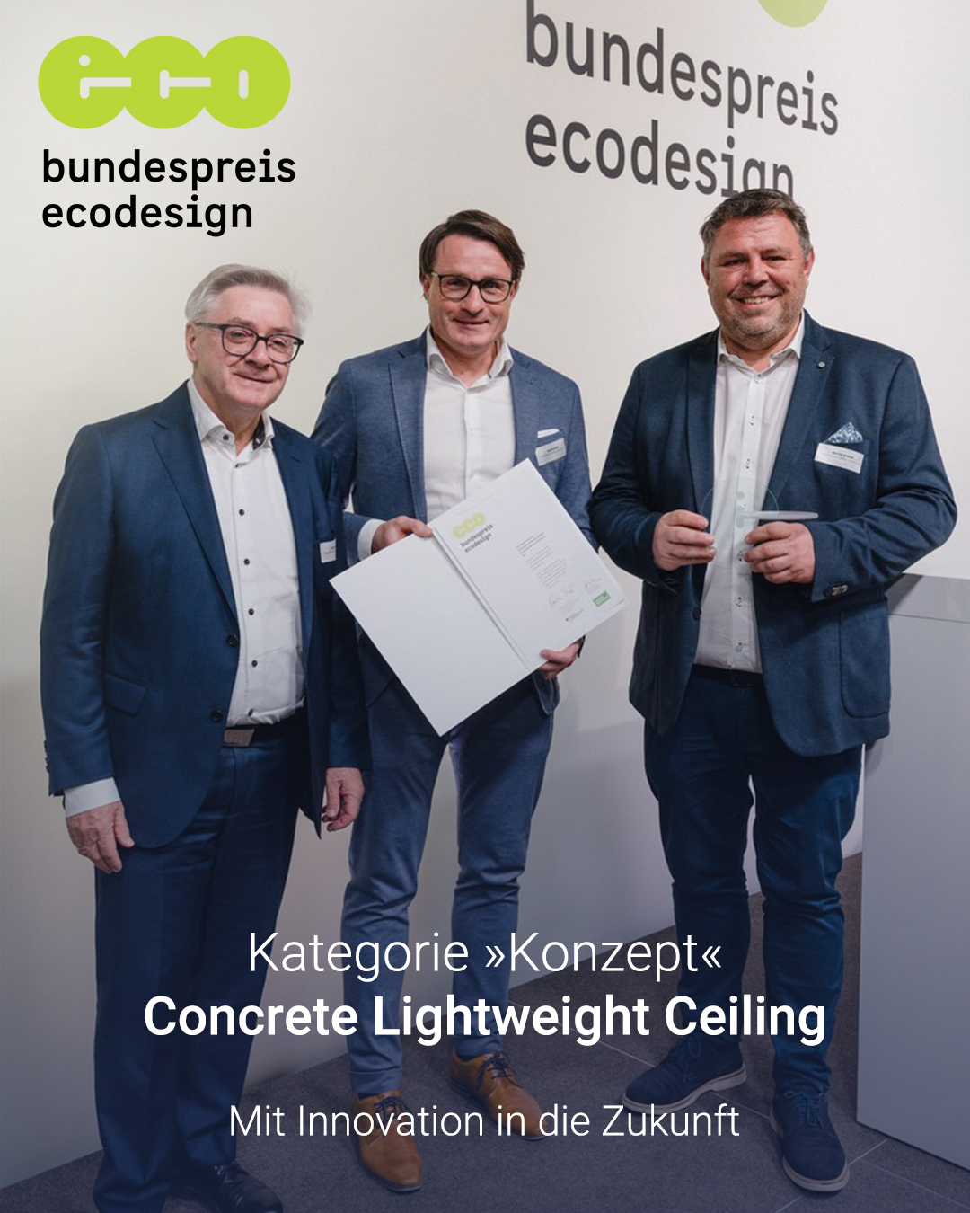 Wir freuen uns riesig, dass unsere innovative Concrete Lightweight Ceiling in der Kategorie Konzept mit dem Bundespreis Ecodesign 2025 ausgezeichnet wurde!